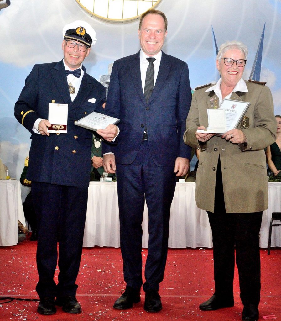Neue Stadtordensträger 2025: Michael Plähn (Marine-Tambour-Korps) und Brita Kahrau-Adams (Grenadier Gesellschaft)
